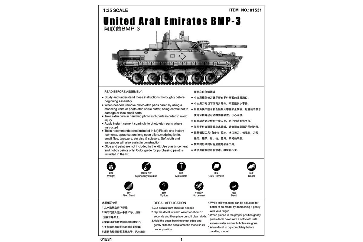 01531 | Trumpeter 1/35 United Arab Emirates BMP-3 Tank Scaled Plastic Model Kit
