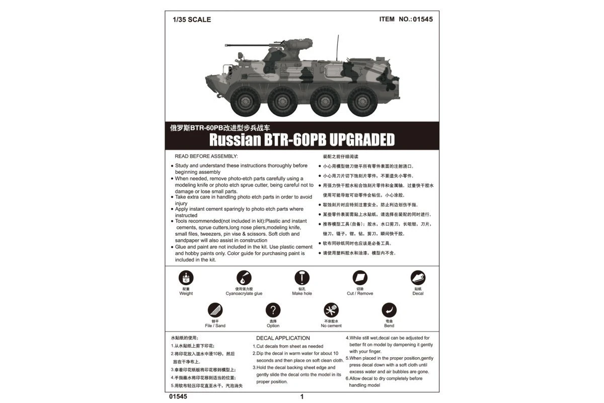 01545 | Trumpeter 1/35 Russian BTR-60PB Upgraded Armoured Personnel Carrier Vehicle Scaled Plastic Model Kit -Outlet Crafted Scale Store TRU 01545 60 1200x800 1