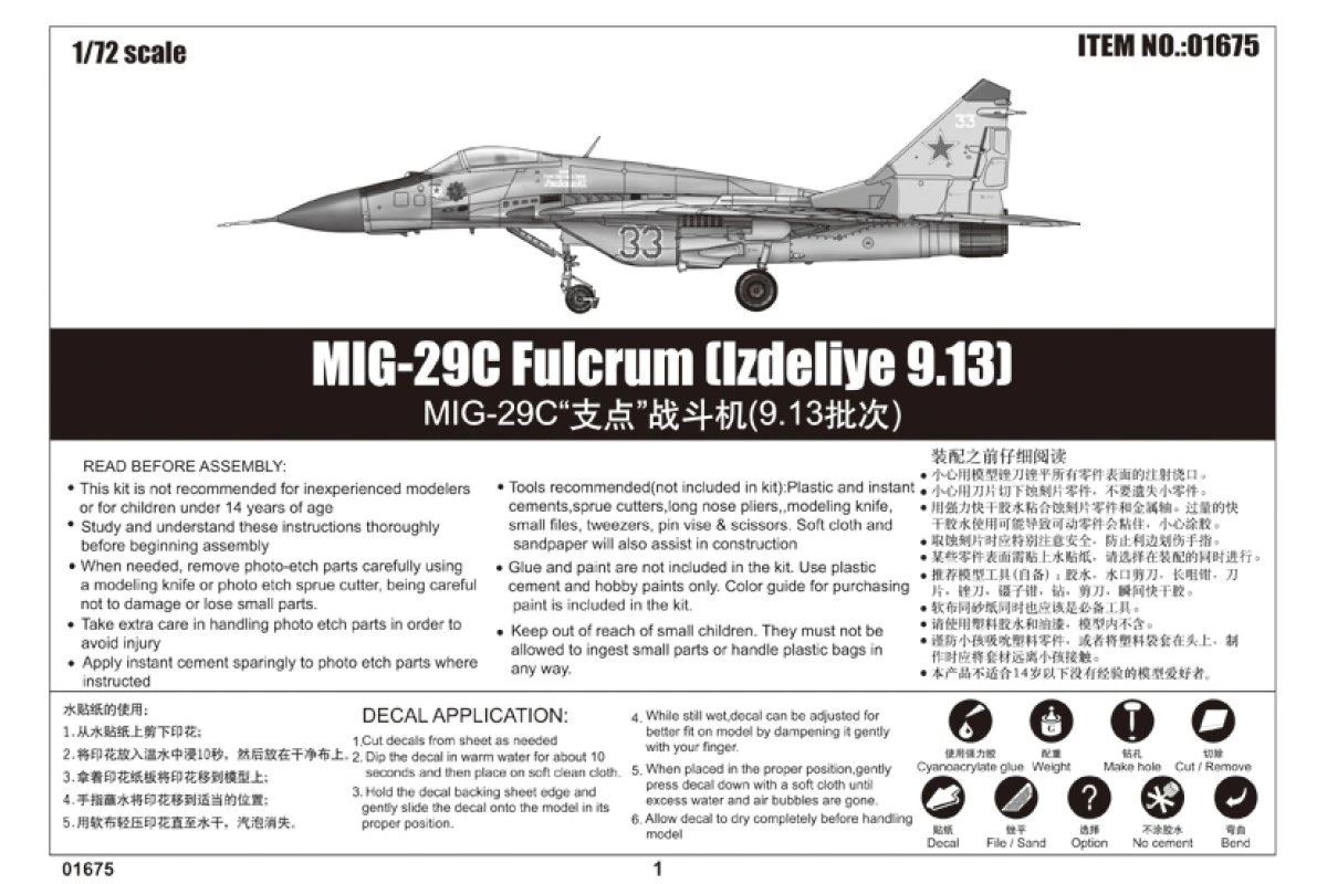 01675 | Trumpeter 1/72 MiG-29c Fulcrum (Izdeliye 9.13) Fighter Jet Scaled Plastic Model Kit -Outlet Crafted Scale Store TRU 01675 54 1200x800 1