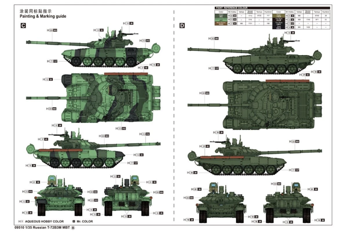 09510 | Trumpeter 1/35 Russian T-72B3M Main Battle Tank Scaled Plastic Model Kit